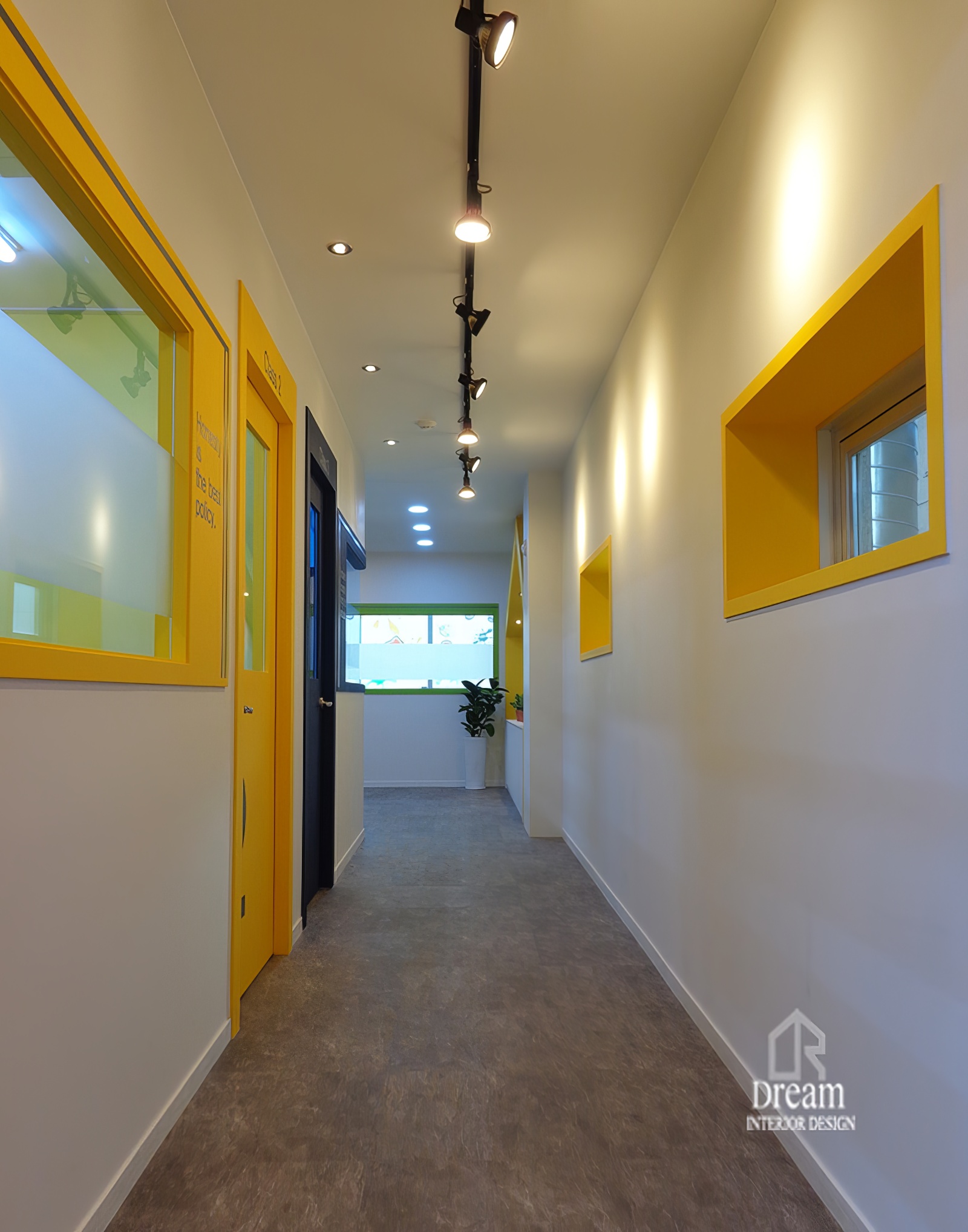 이번 양산 미술학원 인테리어 공사는 복도에 레일등을 달아 보았는데요 ~