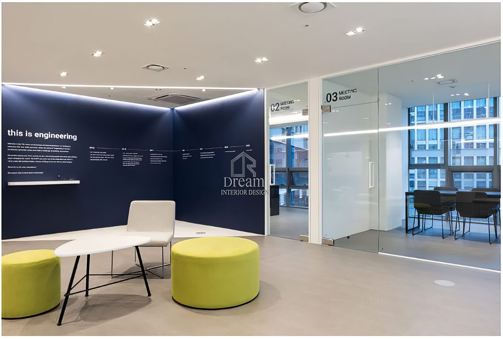 인디언 블루 색상의 파티션을 이용하면서 라인 조명을 연결 하여 강렬한 인상을 주는 디자인 컨셉으로 진행이 되었습니다