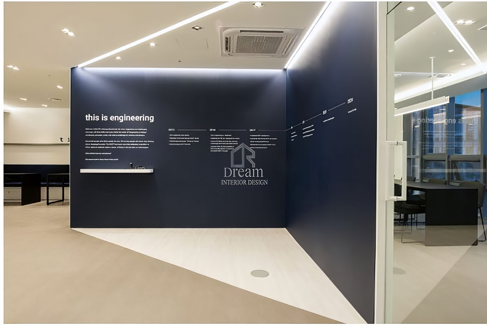 인디언 블루 색상의 파티션을 이용하면서  라인 조명을 연결 하여 강렬한 인상을 주는 디자인 컨셉으로 진행이 되었습니다