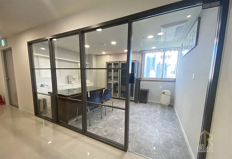 유리 시창은 클라이언트의 의견에 따라서 허리에서 상부까지 시원하게 오픈 하였습니다.