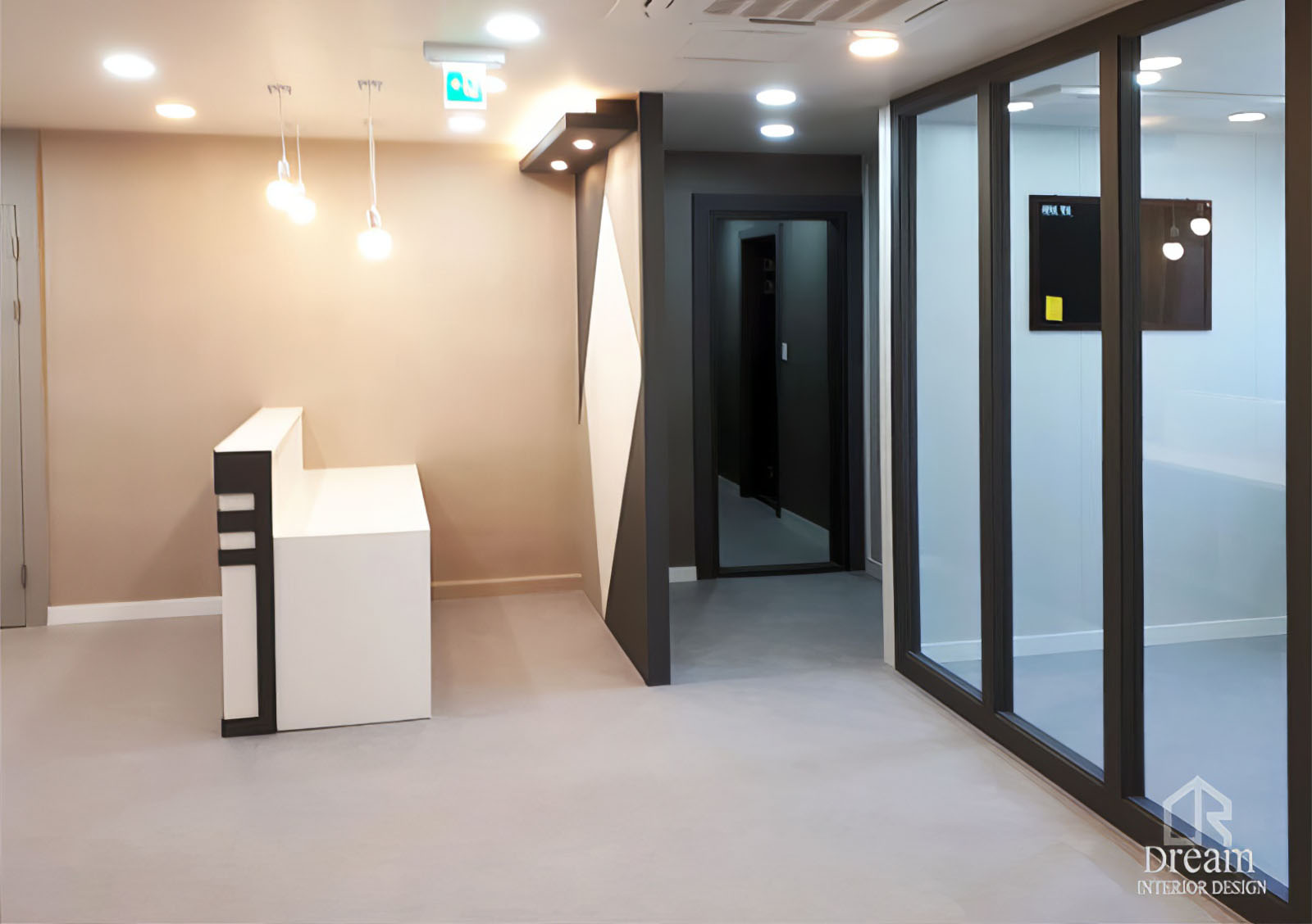 ▼ 먼저 전체 유리 칸막이를 시공하면서 출입문 부위는 문과 일체형으로 시공을 하여 일체감 있는 컨셉 입니다